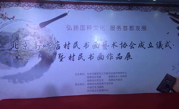 据介绍,高碑店成立村级书画艺术协会在全市乡村中尚属先例,会员全部来自高碑店村本村村民,这也是自去年以来由北京市农工委宣教中心李彬主任特邀中国艺术书画院任伟院长在北京高碑店开展的文化试点村建设取得的成果。